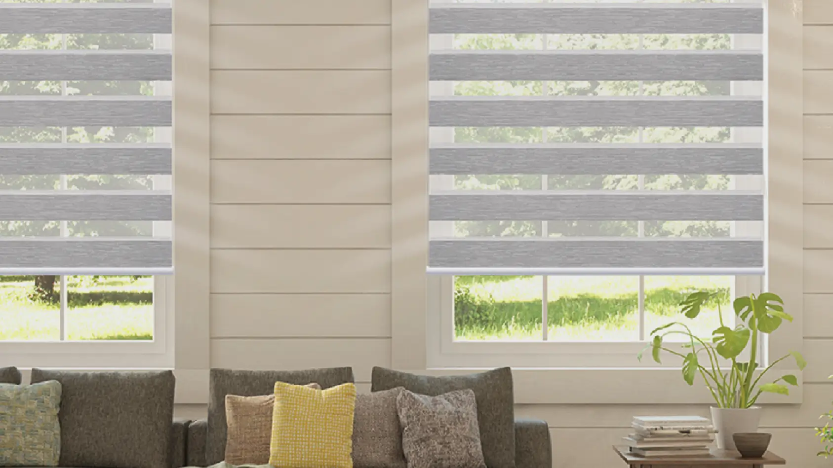 Zebra shades feature alternating sheer and opaque fabric bands, allowing for customizable light control and adjustable privacy. These stylish shades effortlessly transition from full privacy to gently filtered natural light with a simple adjustment.